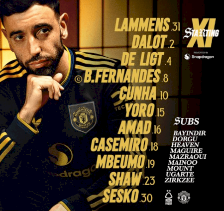 CONFIRMED: Manchester United Starting XI vs Nottingham Forest