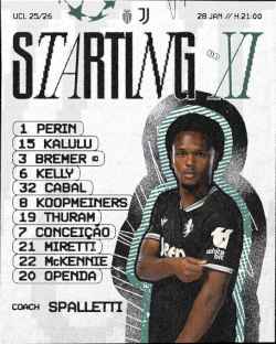 Official Juventus squad vs Cremonese: 22 players called up, five absent