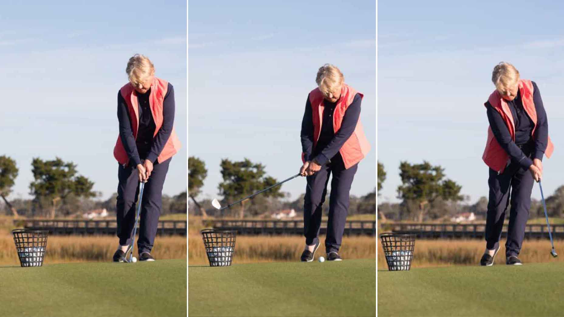 Golf instructor demonstrates drill
