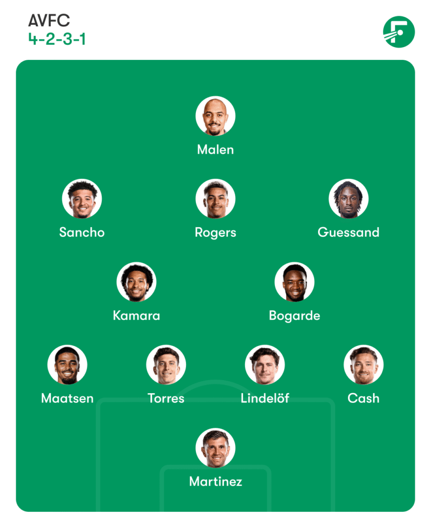 Ian Maatsen has started all four Europa League matches. I expect that to continue, and for Emery to link him up with Jadon Sancho again on the left flank.