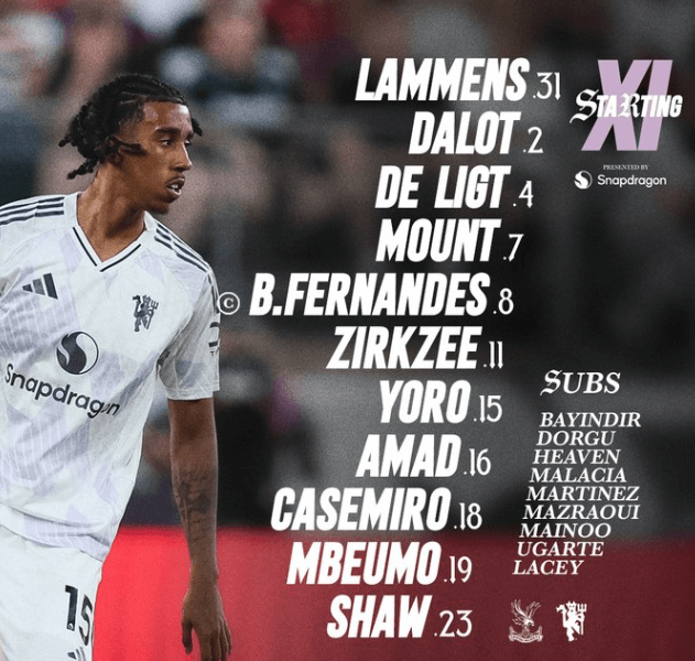 Manchester United are ready for Sunday’s early kick-off match in London and here is the team that will run out at Selhurst Park. Senne Lammens is expectedly in goal, while Matthijs de Ligt gets to lead the defensive unit. Either side of him will be Leny Yoro and Luke Shaw. With Diogo Dalot expected to start as the left wingback, this leaves space for Amad Diallo to be taking up the entire right flank. In between the two of them will be a now ‘set in stone’ partnership of Casemiro and Bruno Fernandes in the middle of the park. Ahead of them, Bryan Mbeumo wants to continue his good start at United, Mason Mount wants to keep improving as he did recently, while the lone striker will be Joshua Zirkzee.