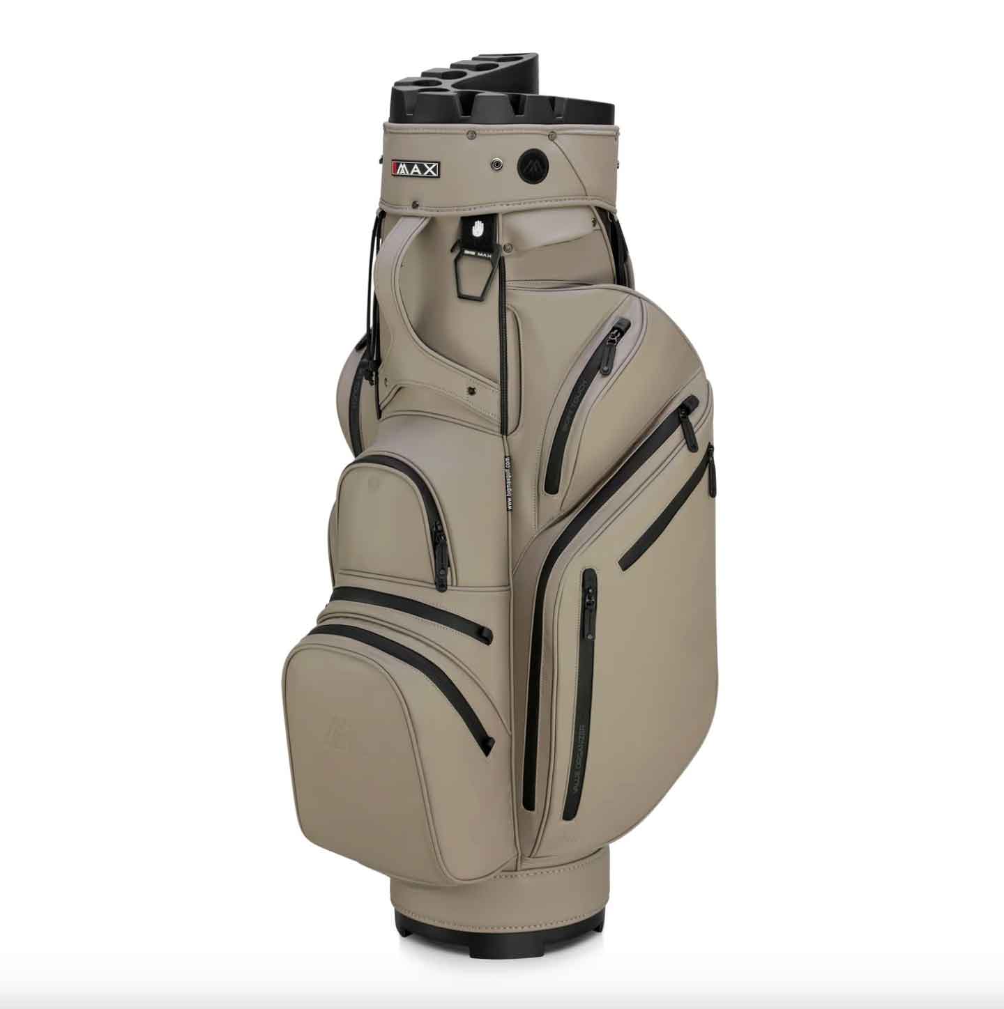 This cart bag has a unique 14-way “Silencio” top, which keeps clubs separate and silent. It really works — my test round was on a mountain track in Flagstaff, and despite multiple bumps in the cart going up and down hills, my clubs didn’t clank at all. The premium SoftGuard PU material on the body of the bag is water- and scratch-resistant and easy to clean, and there are pockets galore — 12 in total! — for all your storage needs.