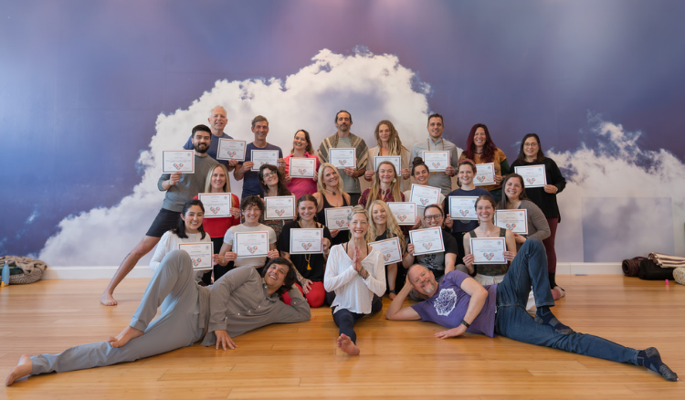 In-person training gives you things that are genuinely difficult to replicate through a screen. Real-time feedback on your physical alignment. The experience of giving and receiving hands-on adjustments. The kind of attention that develops when a group of people spend weeks in the same room, working through